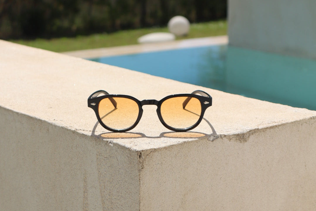 Deze bril valt op door zijn warme oranje glazen met een zachte overgang. Het zwarte frame maakt ‘m net wat brutaler.